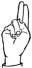 На ћирилици написано РАДНА НОВАКОВИЋ састоји се из 14 слова [?]. Исписано ћириличном једноручном азбуком за глувонеме: